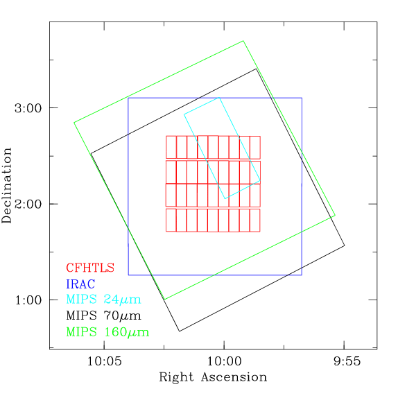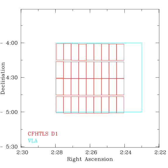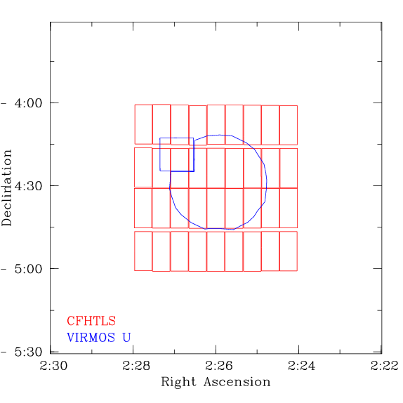 While every effort has been made to locate useful datasets, the page may not be up to date. If you have or know of data that is not included on this page that you feel would be useful, please send an e-mail. Also, this page does not list all-sky surveys, ( 2MASS, IRIS, NVSS, for example) which cover the CFHTLS fields. Nor does it list large scale surveys (like the SDSS or the GALEX AIS) which may also overlap.