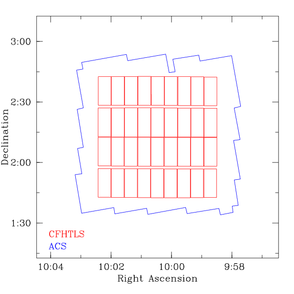 D2 ACS covergage ACS images as chopped up mosaic COSMOS ACS notes.