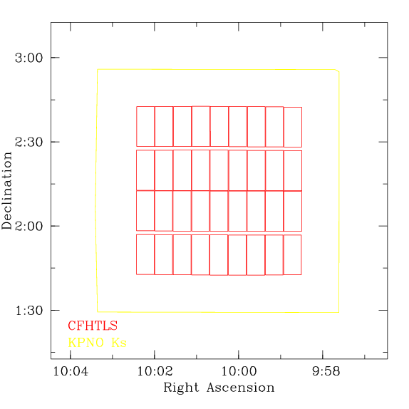 D2 Near IR KPNO 4m FLAMINGOS Ks Ks=20 D2 Ks covergage KPNO images as chopped up mosaic COSMOS KPNO notes.
