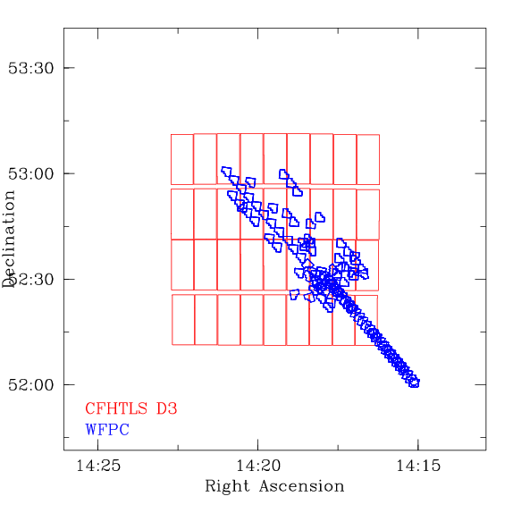 D3 optical HST/WFPC F606W,F814W R~24 D2 WFPC covergage DEEP WFPC images There are also a number of parallel WFPC observations